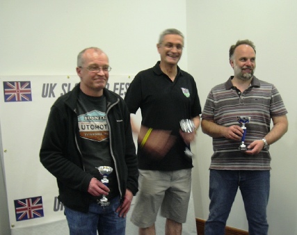 At the start of the A final Mick Metcalfe tok a narrow lead from Mark Witham and Alex Fear. While Mick and Mark have many years of racing experience, Alex only started club racing a few weeks ago. Mick extended his lead while Mark dropped behind Alex. In the middle part of the race Alex took the lead with Mark second having had his runs on white and red lanes, while Mick dropped to third on the outside lanes. Mick retook the lead once he was on the middle lanes, while Alex had the pleasure of white and red and Mark was coping with the other outside pair of lanes.