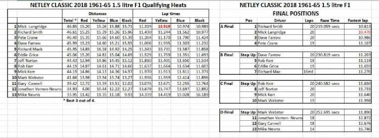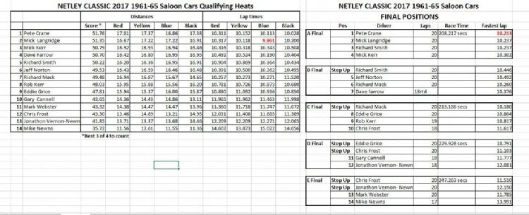 The 2018 Netley Classic was a great day’s racing with 3 classes. It attracted 13 entries in F1 and sports and 14 in saloon. Congratulations to the winners Pete Crane and Dick Smith More important than the results everybody enjoyed the meeting