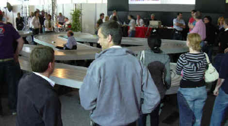 Above the 8 lane BSCRA UK 8 track in use for a public exhibition at the 2008 World Championships in Milton Keynes and for a charity event at Vodafone HQ in Newbury.