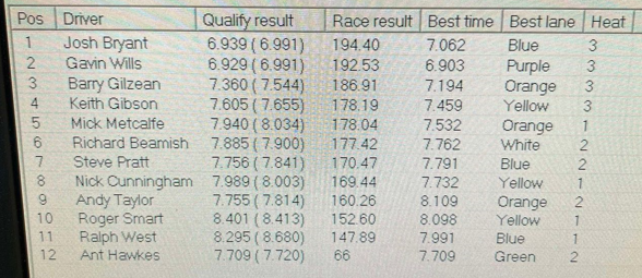 We finished just after 5, having targeted 5pm but expecting two heats not three so a huge thanks to everyone who kept the day running and enjoyable.