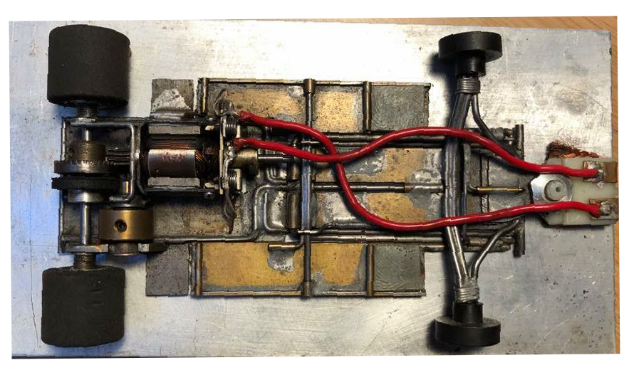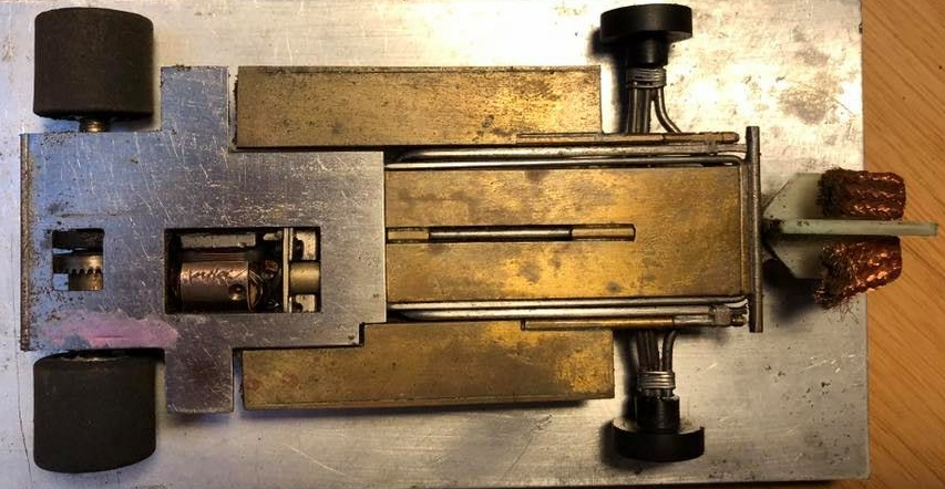 Inline motors are mandatory in F1. An armature in that position doesn’t produce any gyroscopic forces trying to stop the car tipping over in corners. That could make a separate gyro a greater advantage in F1 than in anglewinders. Thanks to Gary for the photos of his gyro F1.
