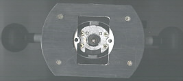 On top of the aluminum plate (shown as gray) I screwed a small piece of brass plate (shown in yellow), and soldered a "L shaped piece of brass wire to this to act as the guide peg. (I used 1.2mm thick brass and M3 screws, but the sizes are not important). The diagram at the top of the page shows where the L shaped guide peg fits. A bit of trial and error adjustment was needed to get the position of the peg right. Having got it right, it's important to do the screws up tight and use some loctite to keep them tight.
