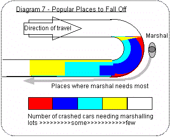 (h) Make sure the number of marshals required isn't too great compared with the likely turn out on a club night. (Its useful to be able to run with reduced marshals, so if possible one person should be able to cover 2 positions. slow marshalling is better than "sorry folks no racing tonight - there aren’t enough marshals".)